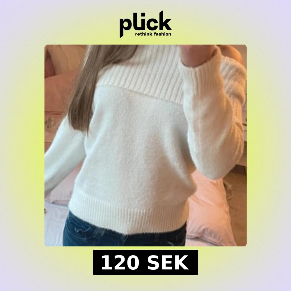 Mysig vit stickad tröja med ribbad hög hals och ribbade muddar. Perfekt för kyligare dagar och enkel att matcha med jeans eller kjol. Cremevit. FrÄn kappahls barnavdelning men passar xs-s