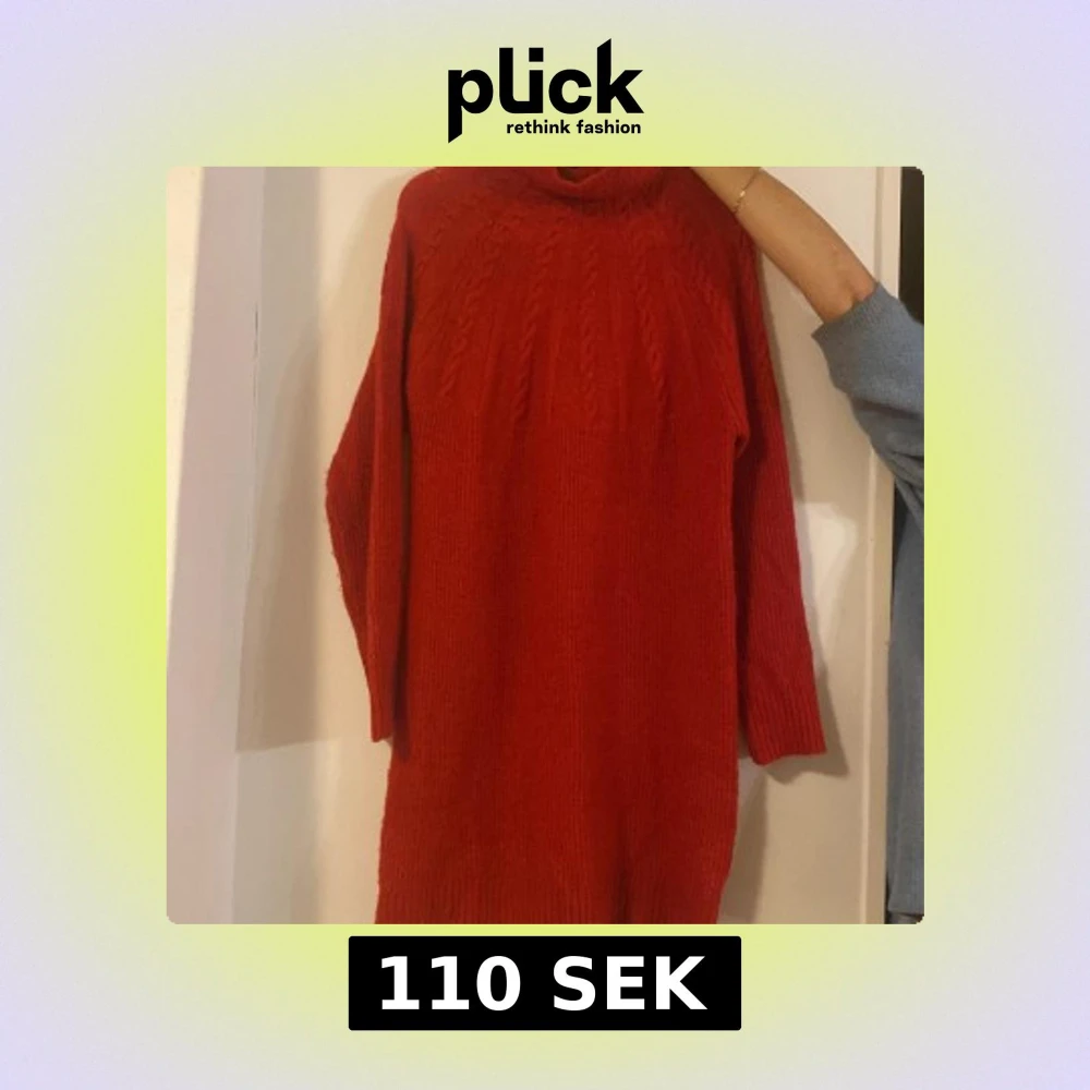 Mysig röd stickad klänning från KappAhl i storlek XS. Klänningen har polokrage, lång ärm och ett snyggt flätstickat mönster upptill. Perfekt för kalla dagar när du vill vara både varm och snygg eller något festlig tillfälle som julafton