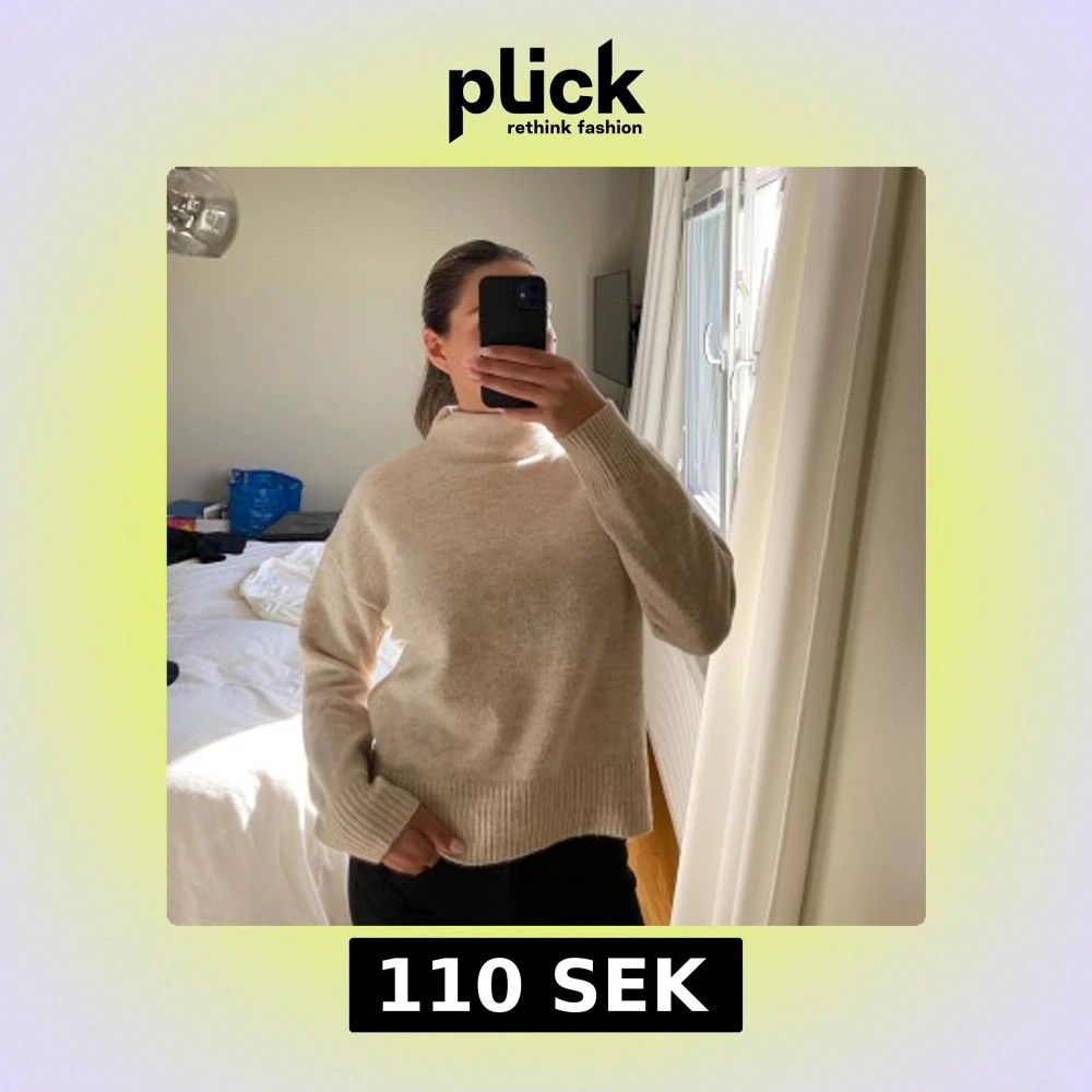 Säljer en mysig beige stickad tröja med långa ärmar och ribbade detaljer vid ärmslut och nederkant. Den är i storlek XS från Kappahl