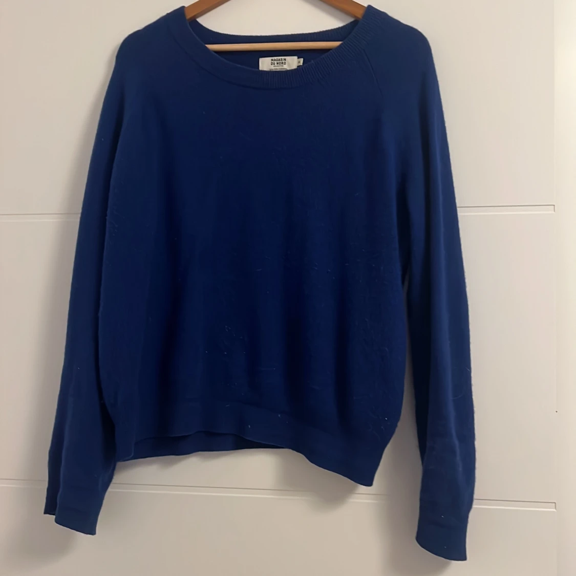 Jättefin blå tröja i 100% kasmir. Använd fåtal gånger och köpt på magasin du nord i Köpenhamn för några månader sen. Passar en S-L beroende på hur man vill att den ska sitta. Pris kan diskuteras vid snabb affär☺️☺️