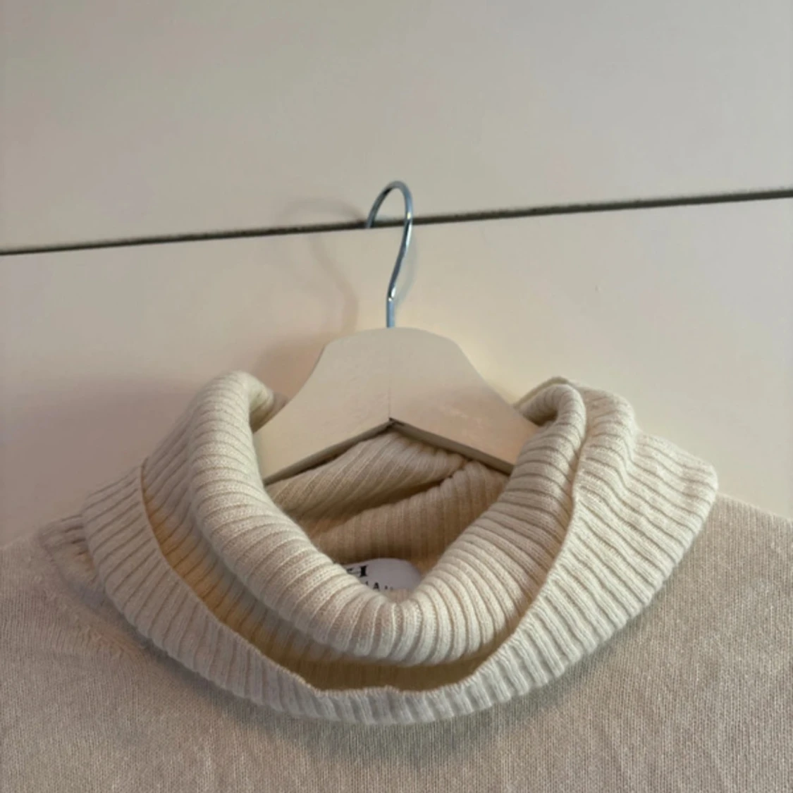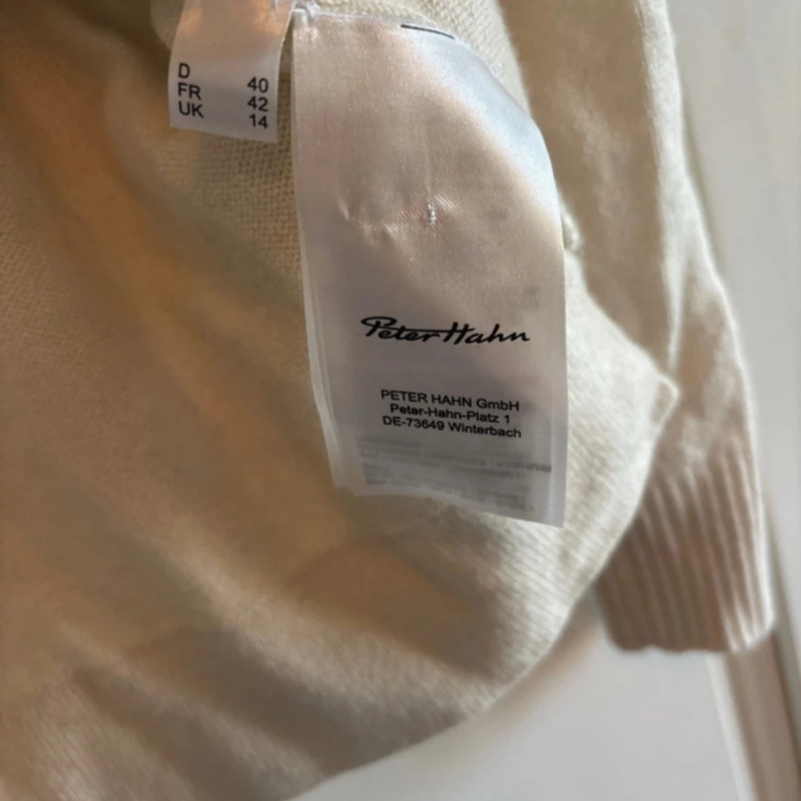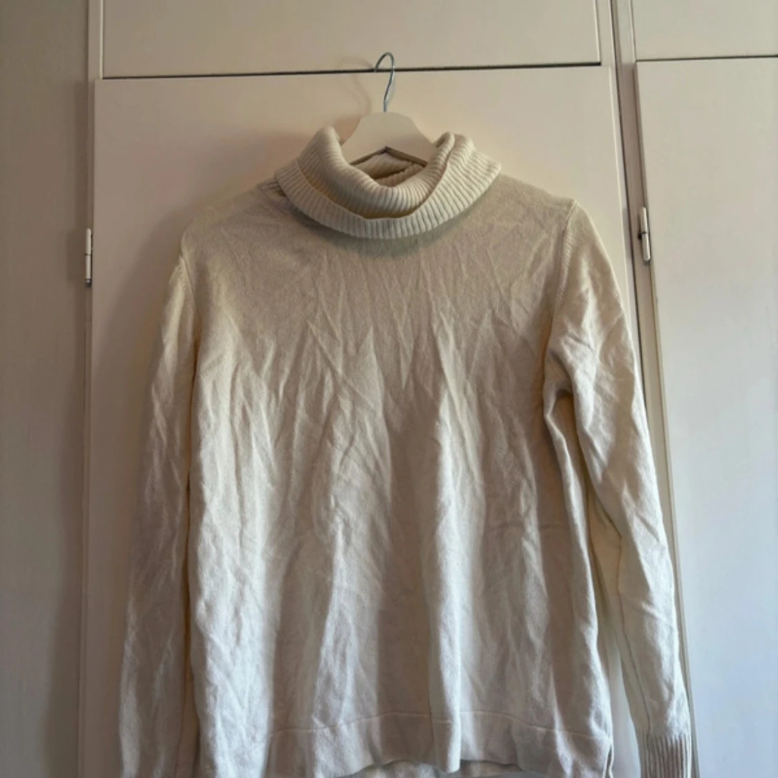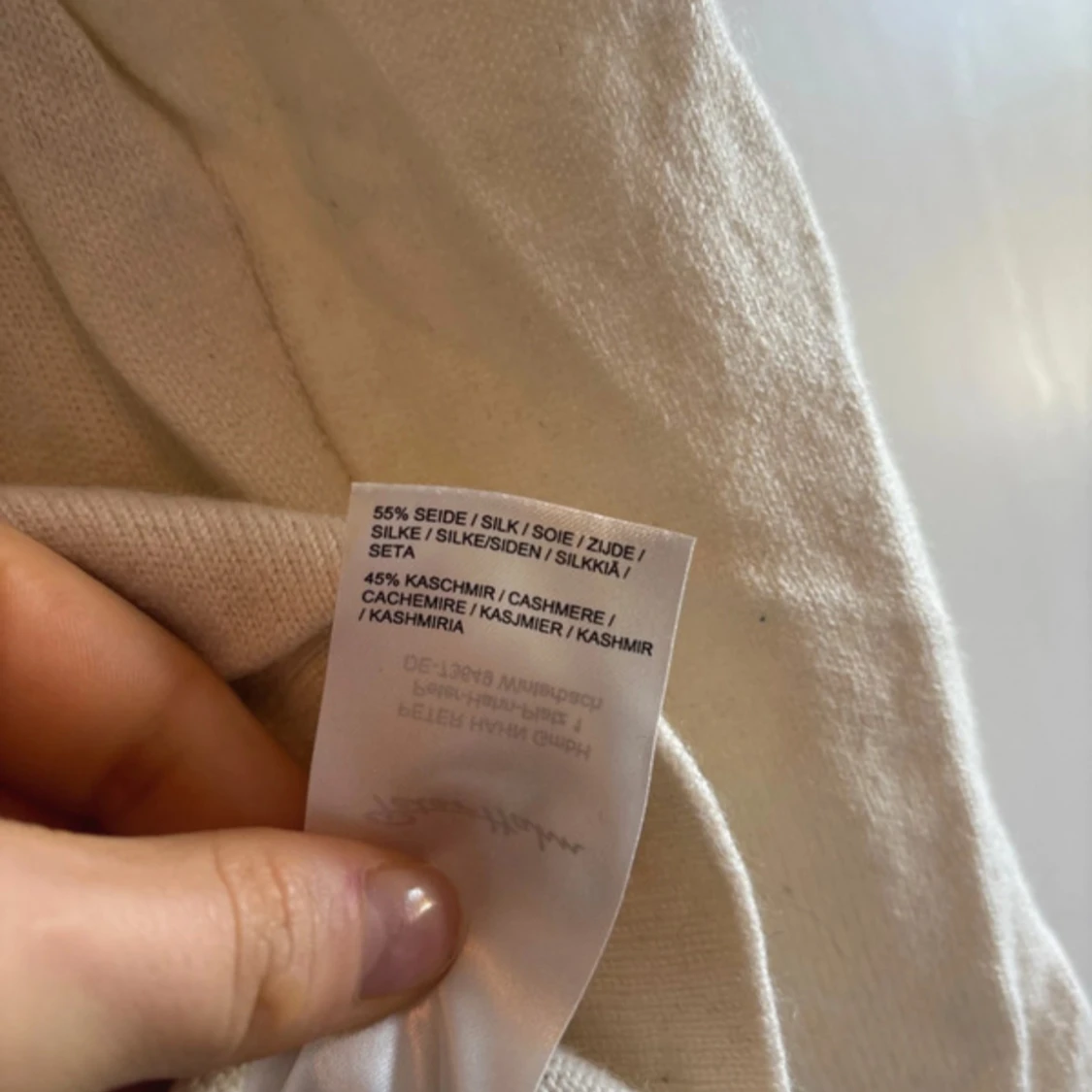 55% kashmir och 45% silke. Fint skick förutom att den är lite skrynklig