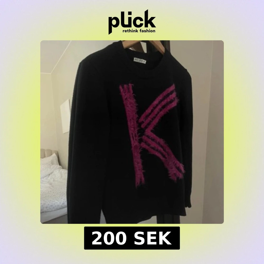 Så fin stickad tröja från kenzo. I en mörkblå färg med ett rosa ”fluffigt” K på sig. Inga defekter alls !! storlek M men liten i storleken så skulle säga xs-m