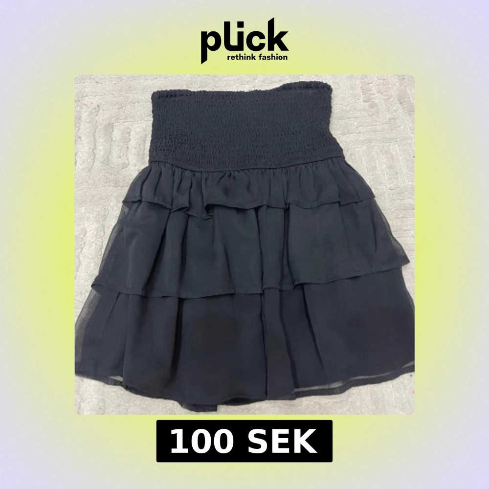 Supersöt svart kortkjol från BikBok i storlek XS. Kjolen har smockad midja och flera lager med volanger som ger en flowy och trendig look. Perfekt att styla med en crop top eller stickad tröja för en cool vibe. Funkar lika bra som en topp skit snygg