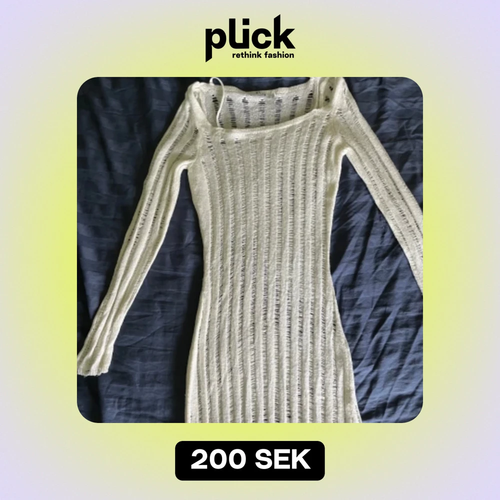 En jättefin vit hålig klänning. I ett stickat material vilket trots att den är hålig gör den varm. Sitter så fint och har en slits nedtill. Går till backen på mig som är 168!