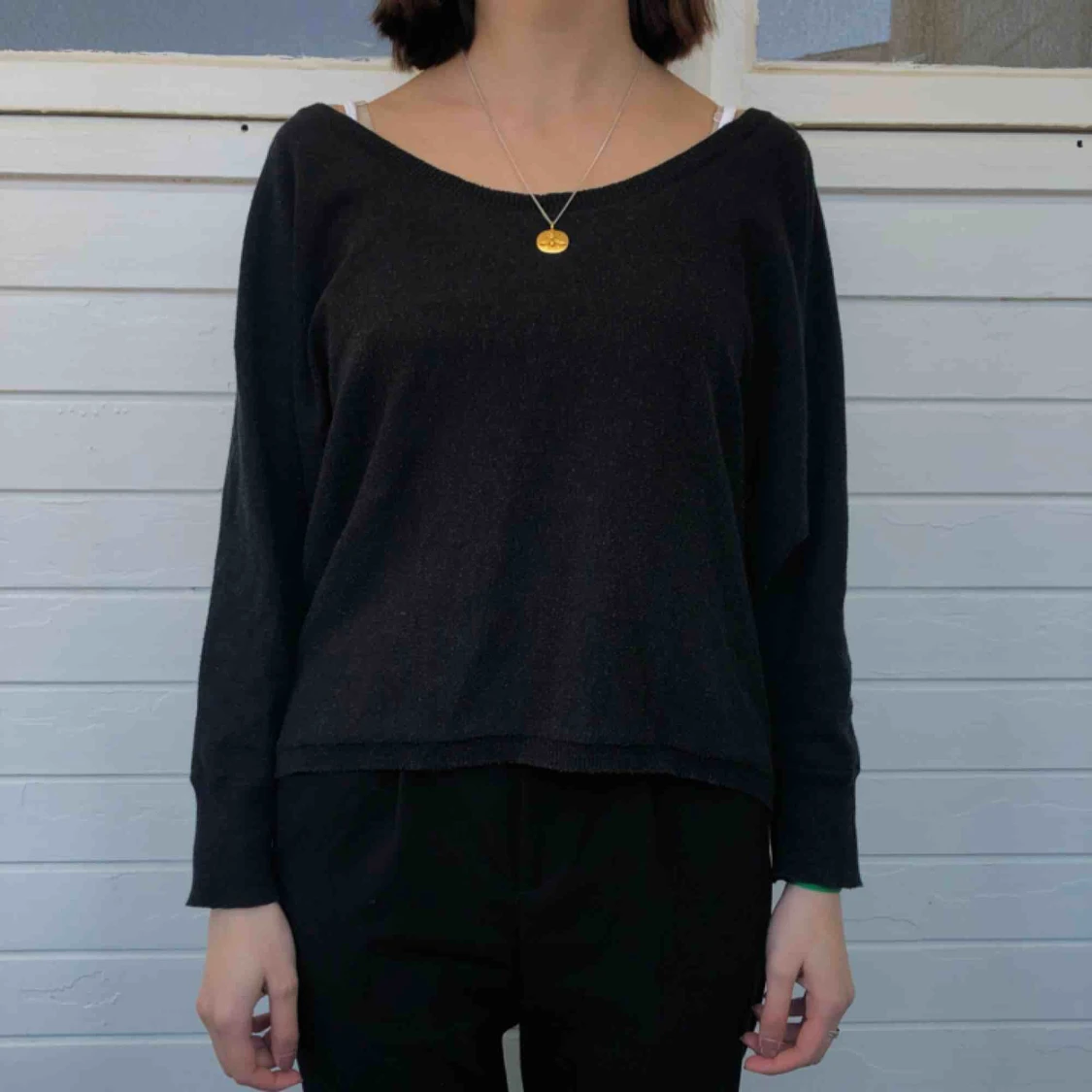 Svart stickad tröja från indiska i strl S (funkar dock även för M skulle jag säga)! Den är i bra begagnat skick och har inga hål eller fläckar. Personen på bilden är 158.
