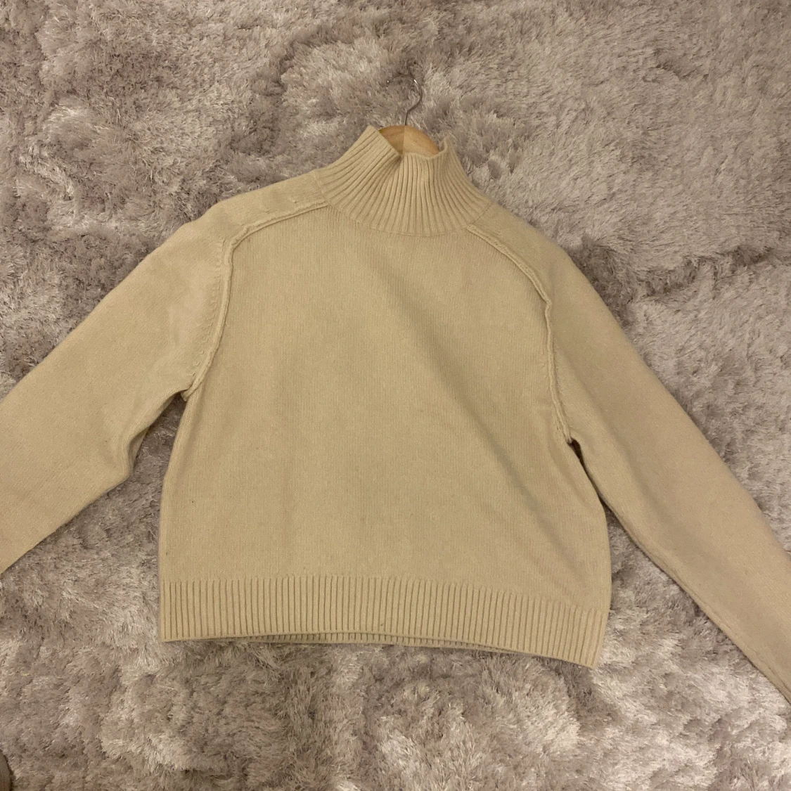 En jätte fin stickad tröja med krage. Jätte mysig och skön att ha på sig. Den är ljusbeige och helt slutsåld, tar gärna emot pris förslag! (Andvänd gärna köp nu, men kontakta innan)