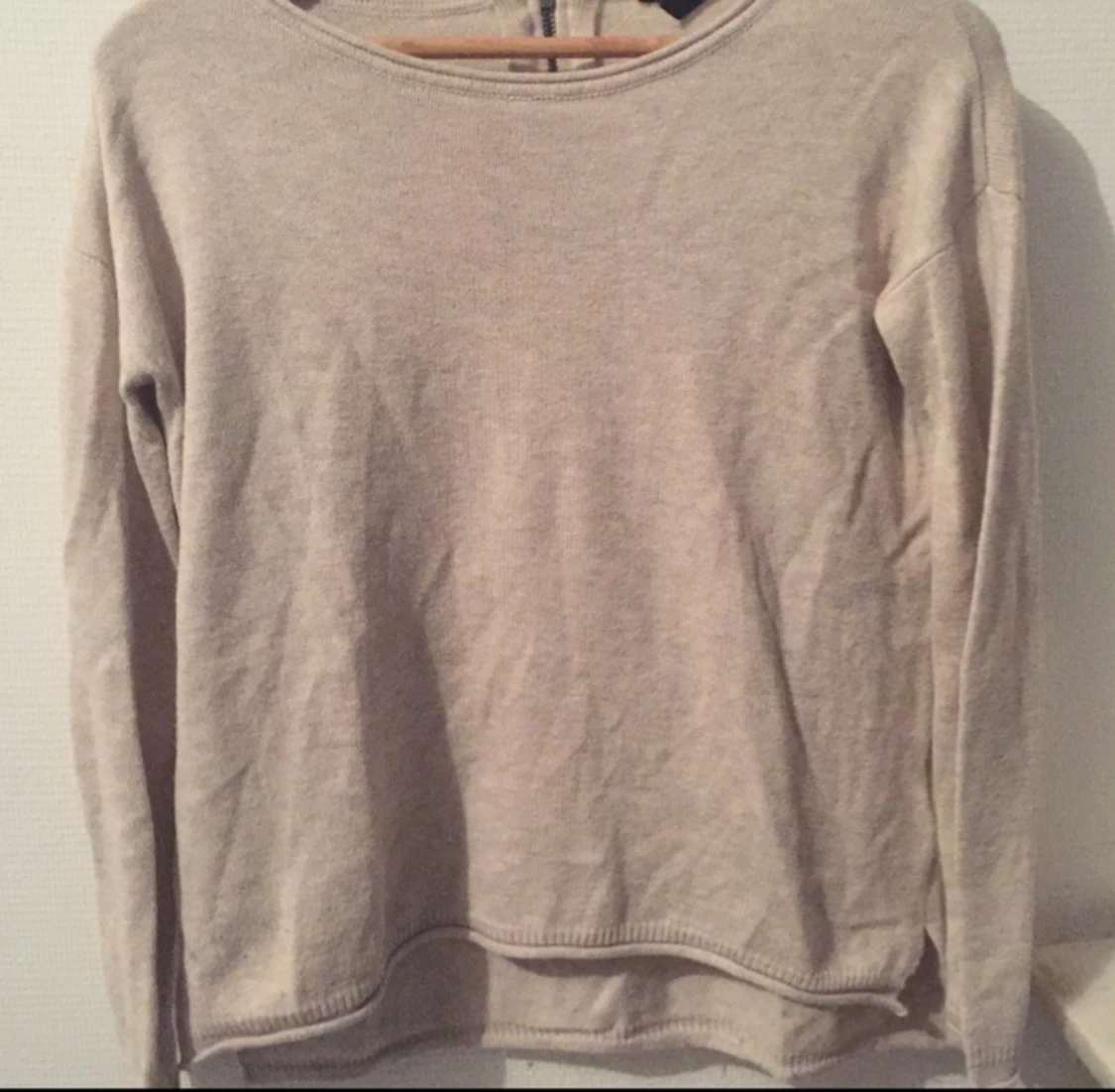 Mysig beige/ puderrosa stickad tröja. Superskön kvalité! Dragkedja i nacke
