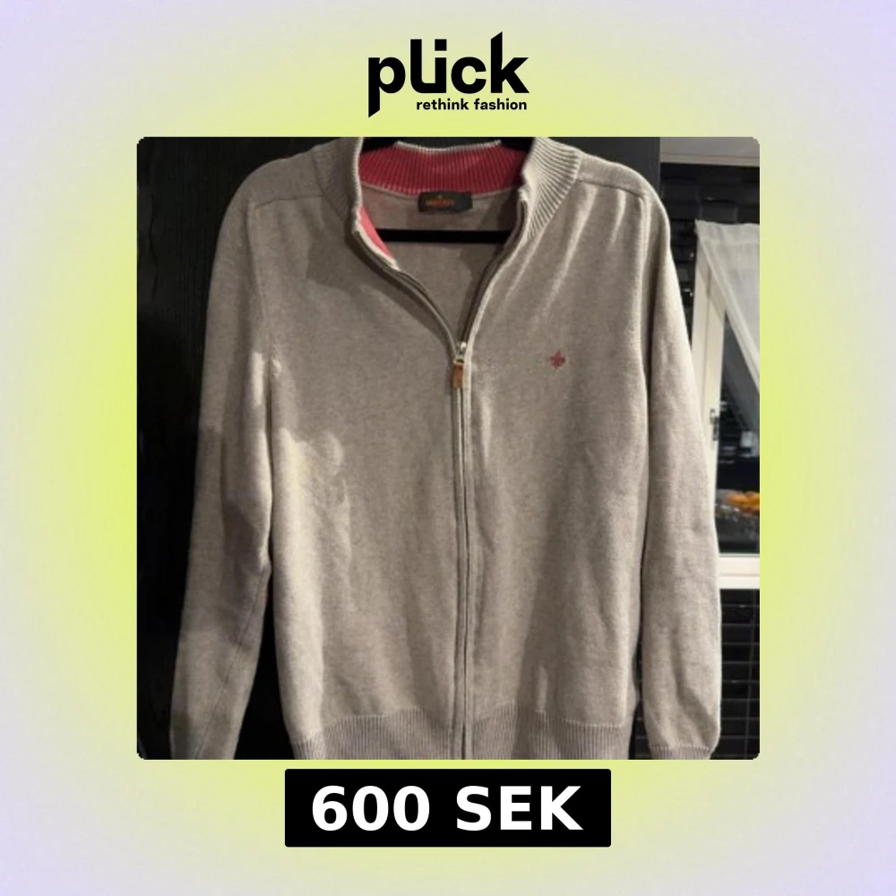 Grå/beige kofta från Morris med hel dragkedja och ribbad krage i rosa. Liten broderad logga på bröstet och rosa detaljer vid armbågarna. Stickad i mjukt material, perfekt för lager-på-lager. Snygg och stilren design som funkar till jeans eller chinos. Storlek S men sitter som M. Passar dig som är mellan 170-180cm. Priset kan diskuteras vid snabb affär . Nypris: 1500kr