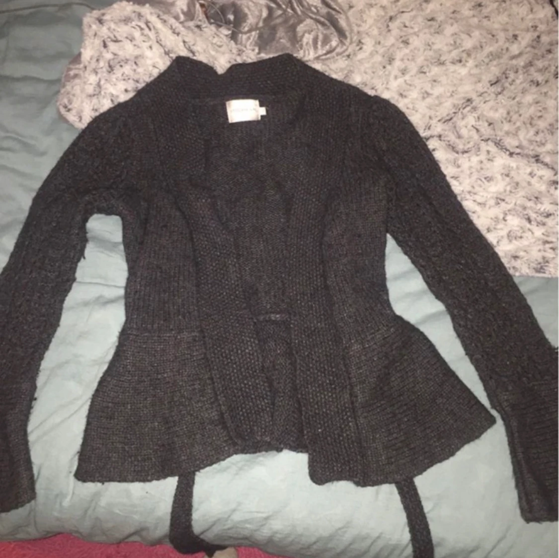 Jättefin grå kofta i ull, den är figursydd men i ändå i en lös passform och går att spännas åt med tillhörande bälte 🖤 Från Stockholm LM , i bra skick, storlek S