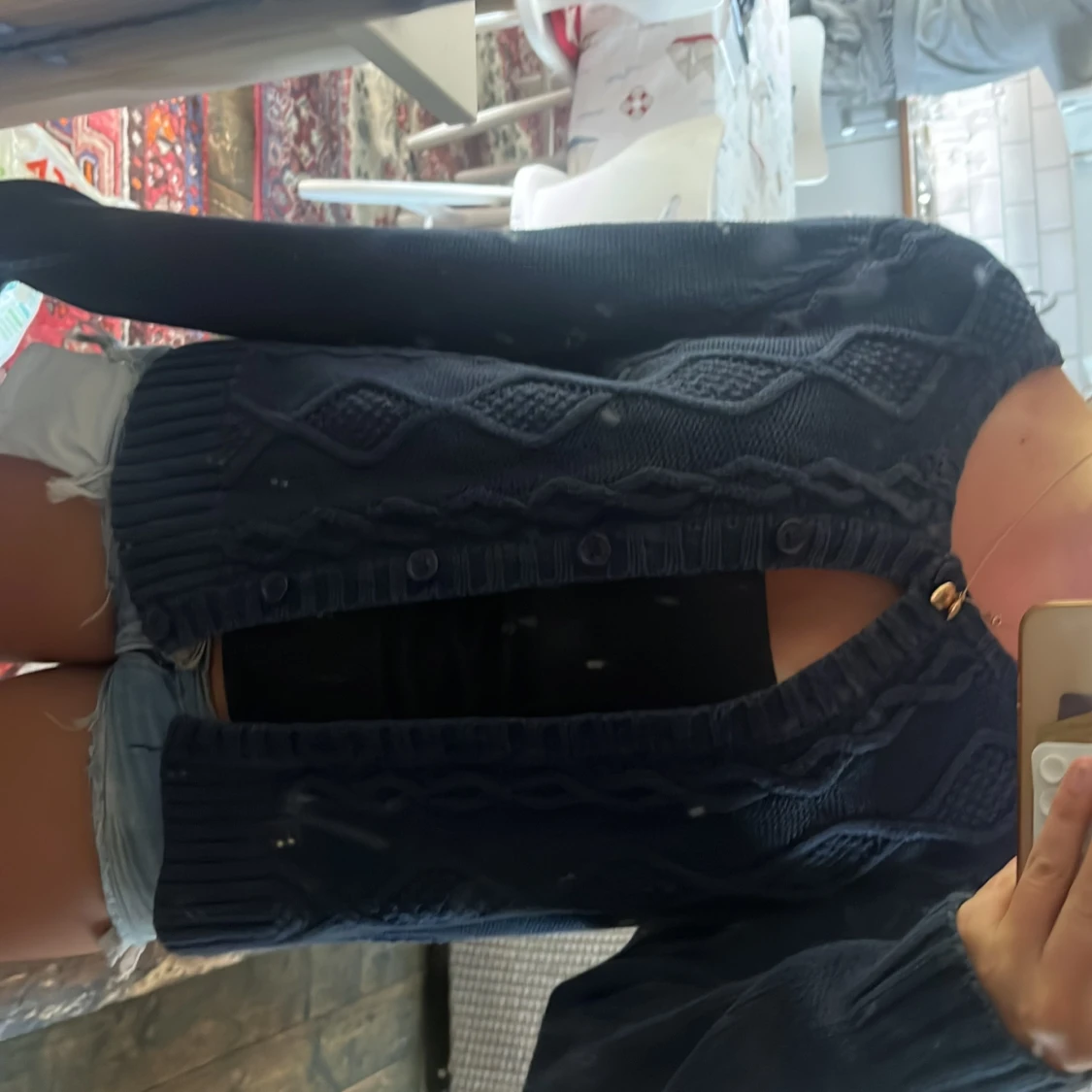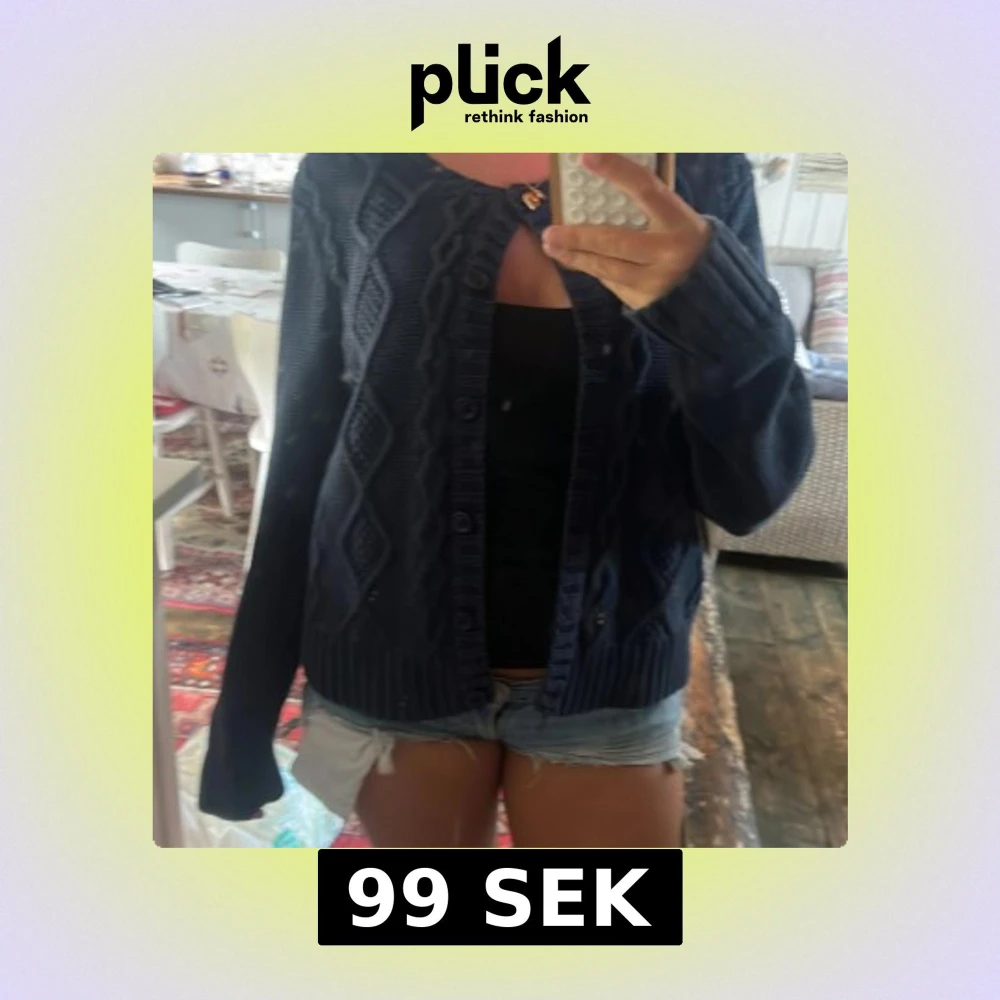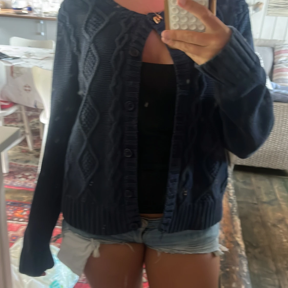 En väldigt fin o mysig kofta till hösten passar till nästan allt och har en väldigt fin blå färg skriv vid funderingar