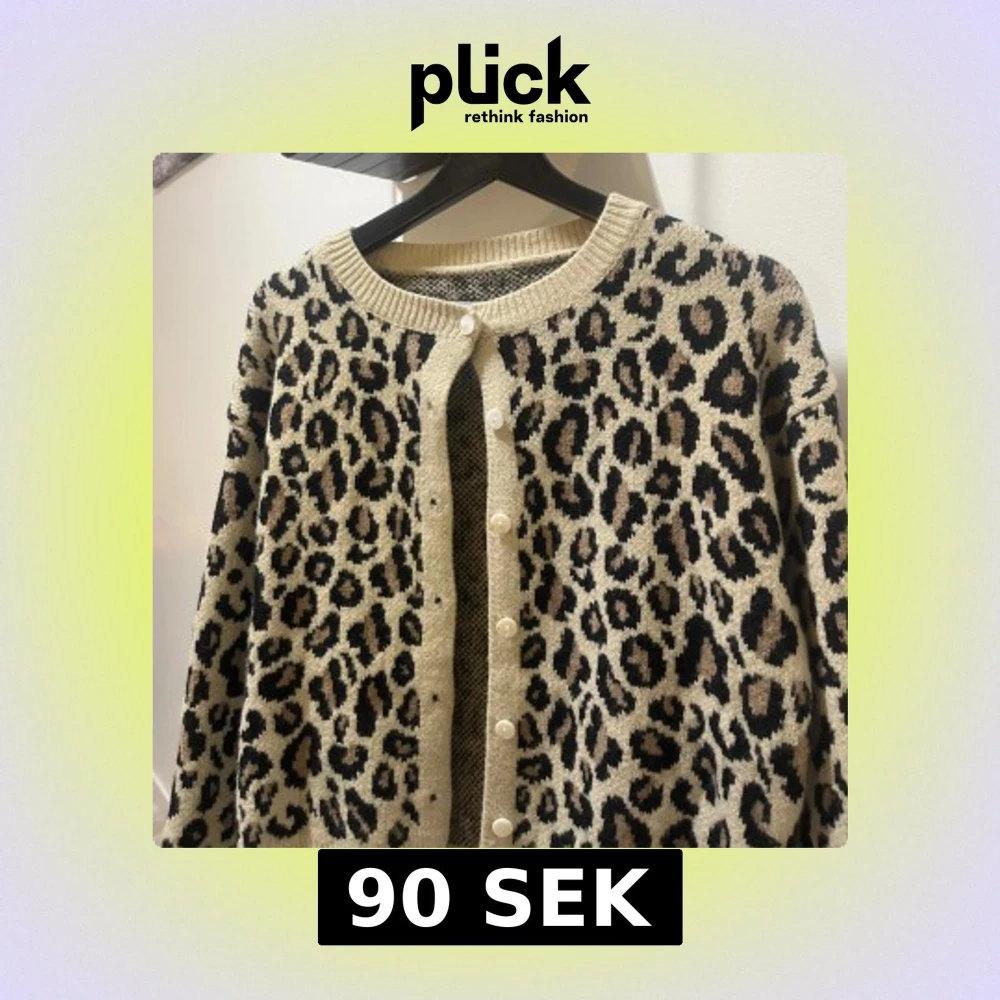 En stickad tröja/kofta med knappar i leopardmönster från Shein. Storlek S. Använd 2 gånger. Köpt för 186kr.