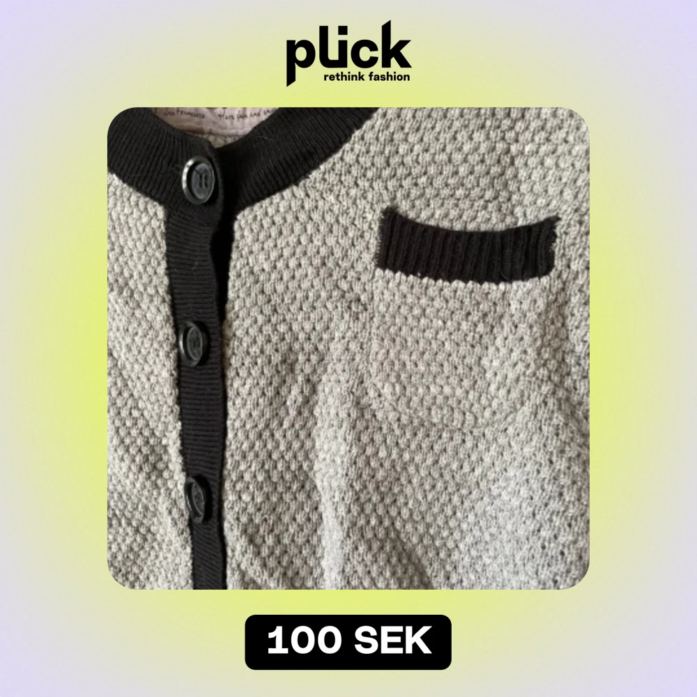 Grå kofta med svarta fållar. Stickad Köp bet frakt