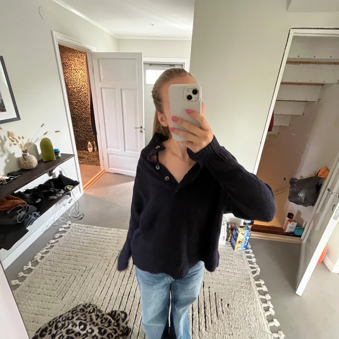 Super snygg stickad blå tröja från Zara med knappar🩵