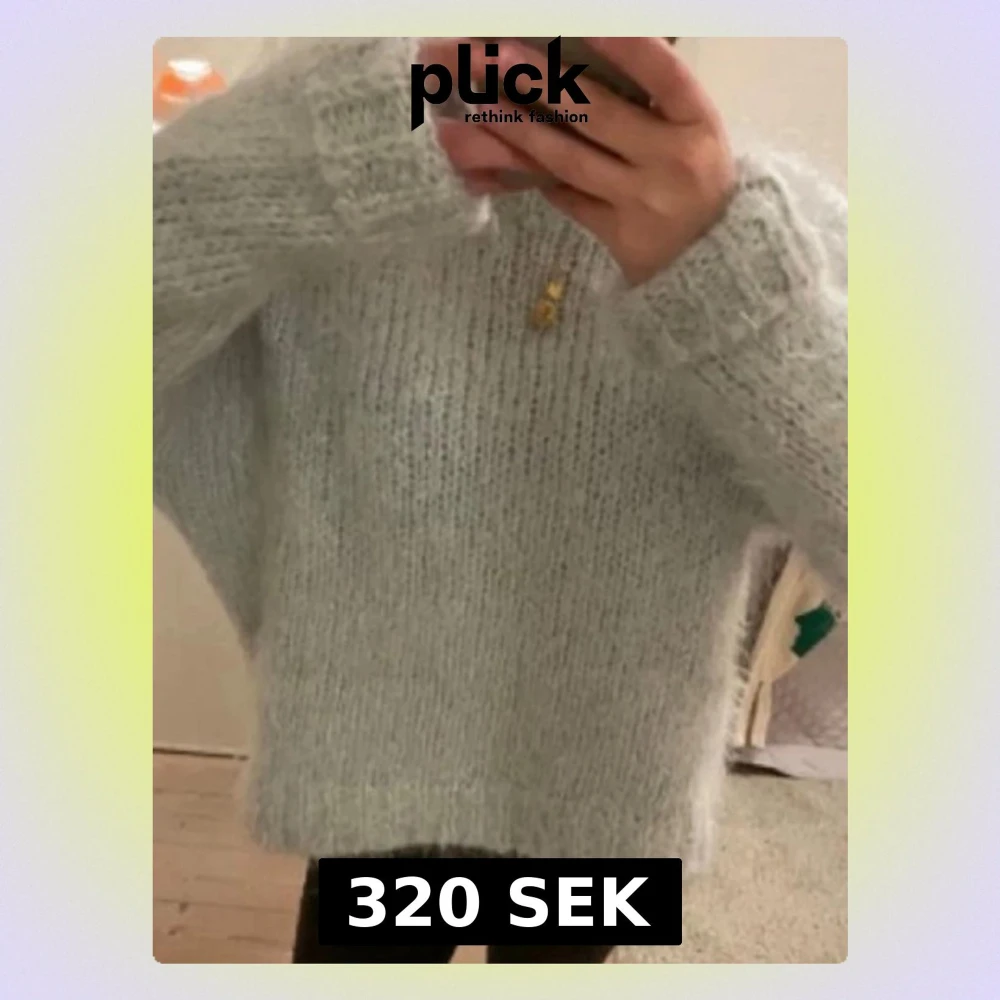 Mohairtröja med lös passform och rund hals. Tröjan har långa ärmar och är gjord i ett lurvigt garn som ger en cozy känsla. Perfekt för kyliga dagar när du vill vara både varm och snygg. Skulle säga att den är blå/grå/grön