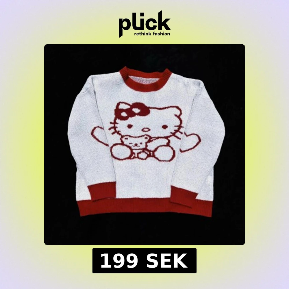 Världens gulligaste stickade Hello Kitty tröja! 🥰Passar alla från XS-L då den är oversized i storleken 📏Endast prövad - som ny! ✨Köp nu 💌