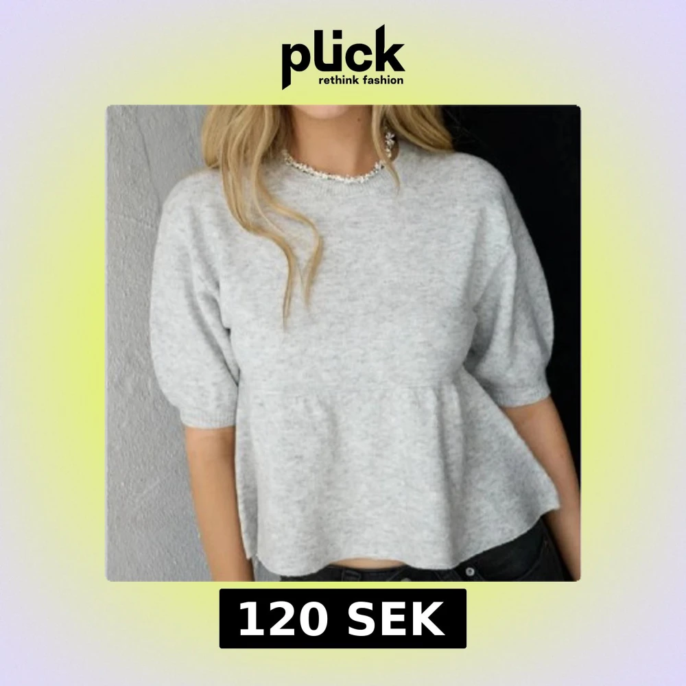 Säljer en ljusgrå peplum topp med rund hals och korta puffärmar från NELLY