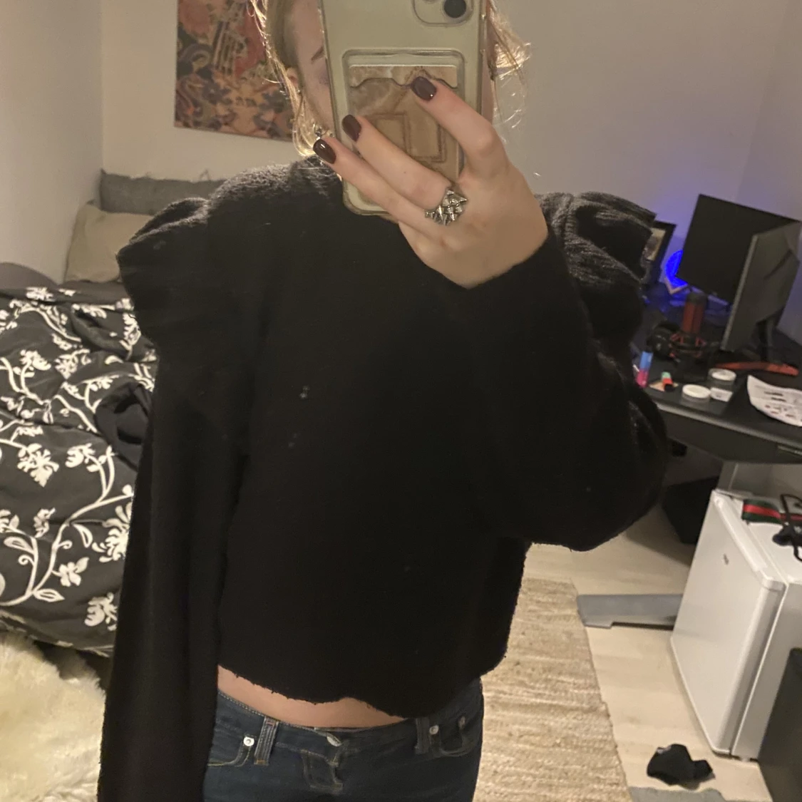 Säljer denna super fina svarta stickade tröjan ifrån H&M med volanger på axlarna❤️ jätte fin , lite croppad och i super bra skick!
