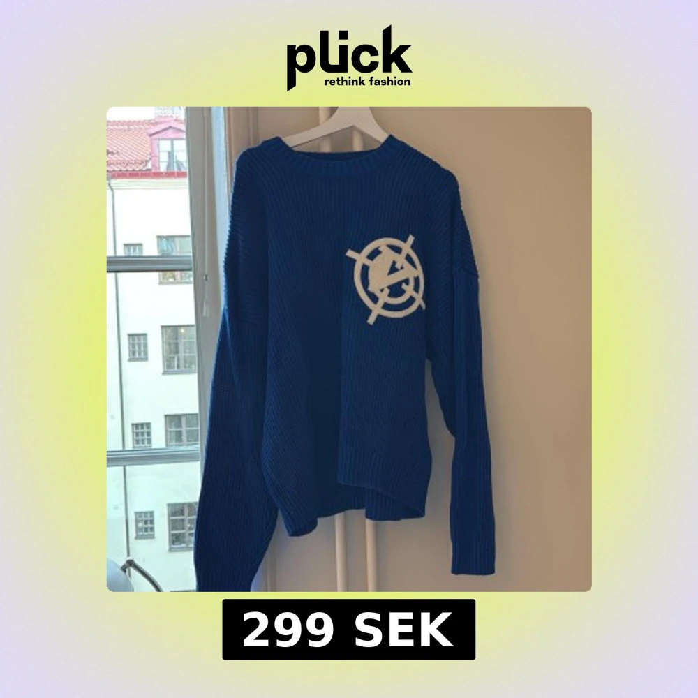 Säljer en blå stickad tröja med en stor vit ”V” logga på bröstet (Vicinity Boys). Tröjan har en avslappnad passform, ganska oversized med rund halsringning samt långa ärmar. Säljer i förhoppning att komma till mer användning då jag har haft på mig den endast två gånger sedan köp…… säljer för 299 kr, kostar ny 800kr