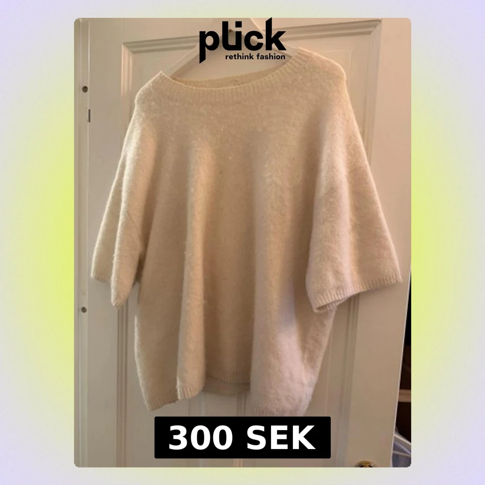 Supermjuk och oversized stickad tröja i ljusbeige ton. Tröjan har bred halsringning, korta ärmar och är gjord i en mix av polyester, alpacka och ull. Perfekt för lager på lager och chill höst- och vinterdagar.