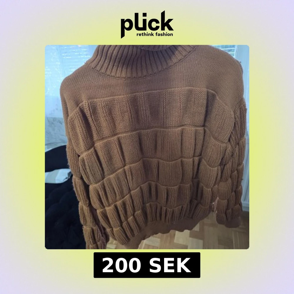 Mjuk och varm brun tröja i stickat material. Oversize-modell med polokrage, perfekt för hösten och vintern. I mycket bra skick