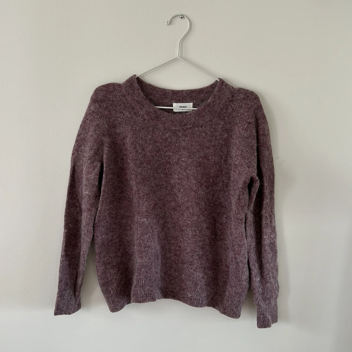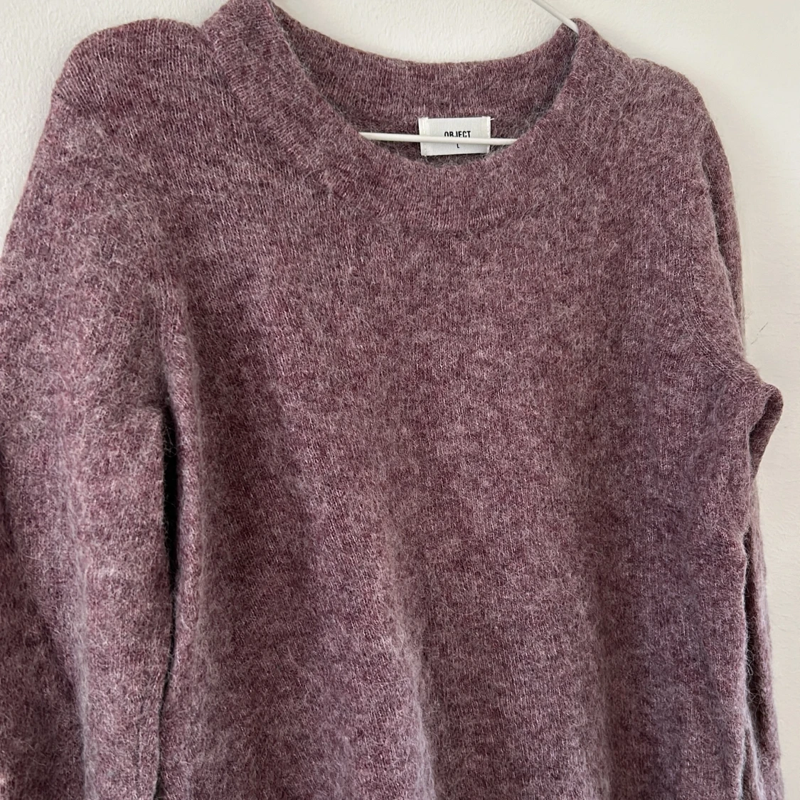 Plommonlila stickad tröja från Object. Storlek L.