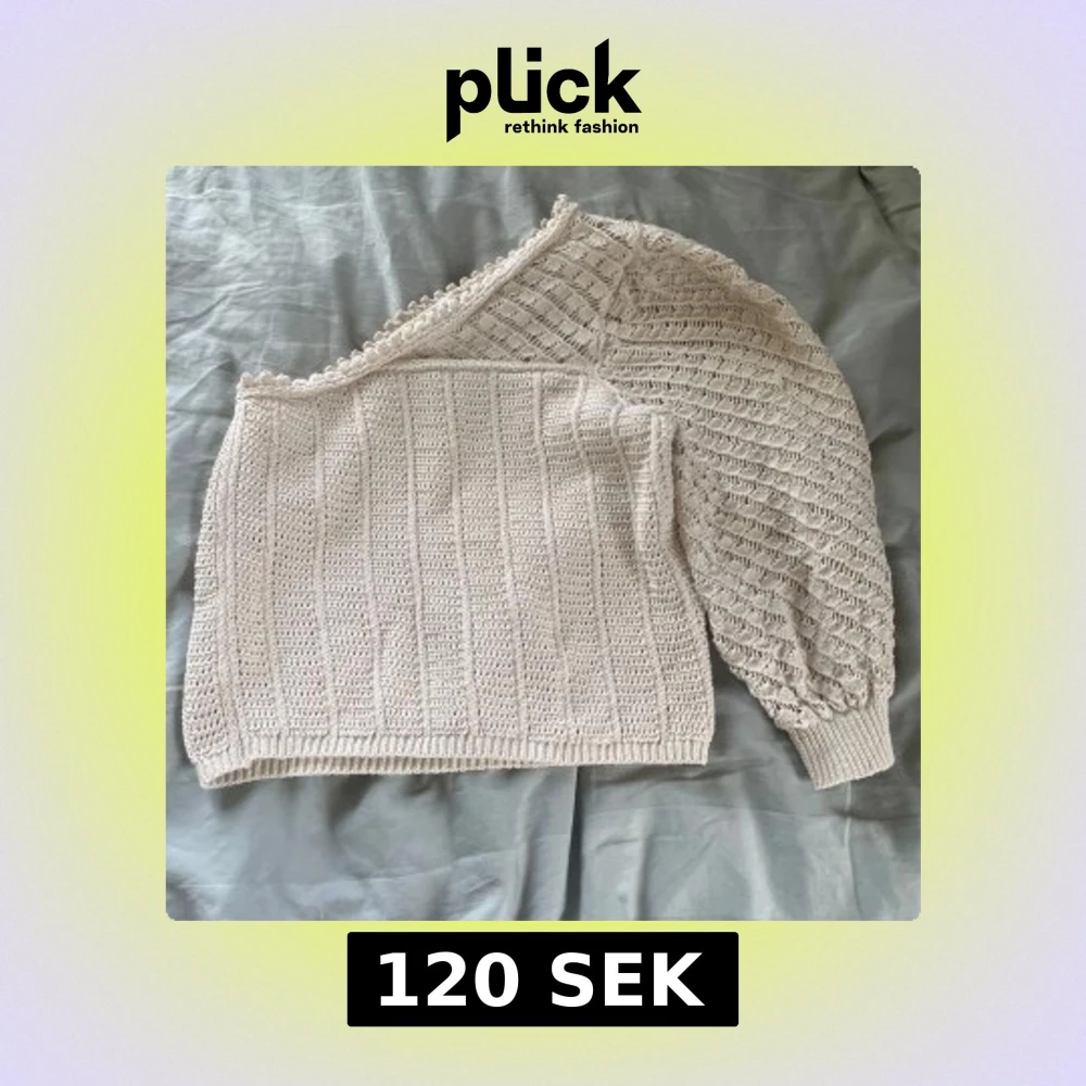 Säljer en beige stickad oneshoulder-tröja från MNG. Bra skick