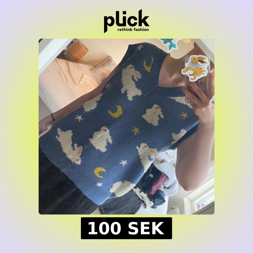 Söt oanvänd stickad väst med kanin och måne-tema🐇🌙 Köpt flera år sedan så vet inte riktigt vart ifrån!