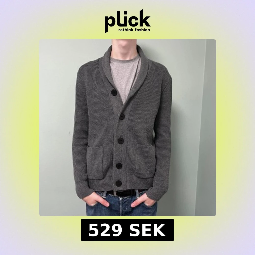 Säljer en stilren grå cardigan med stora svarta knappar och två praktiska fickor framtill. Modellen är 195 och Storlek L. Hör av er vid intresse!