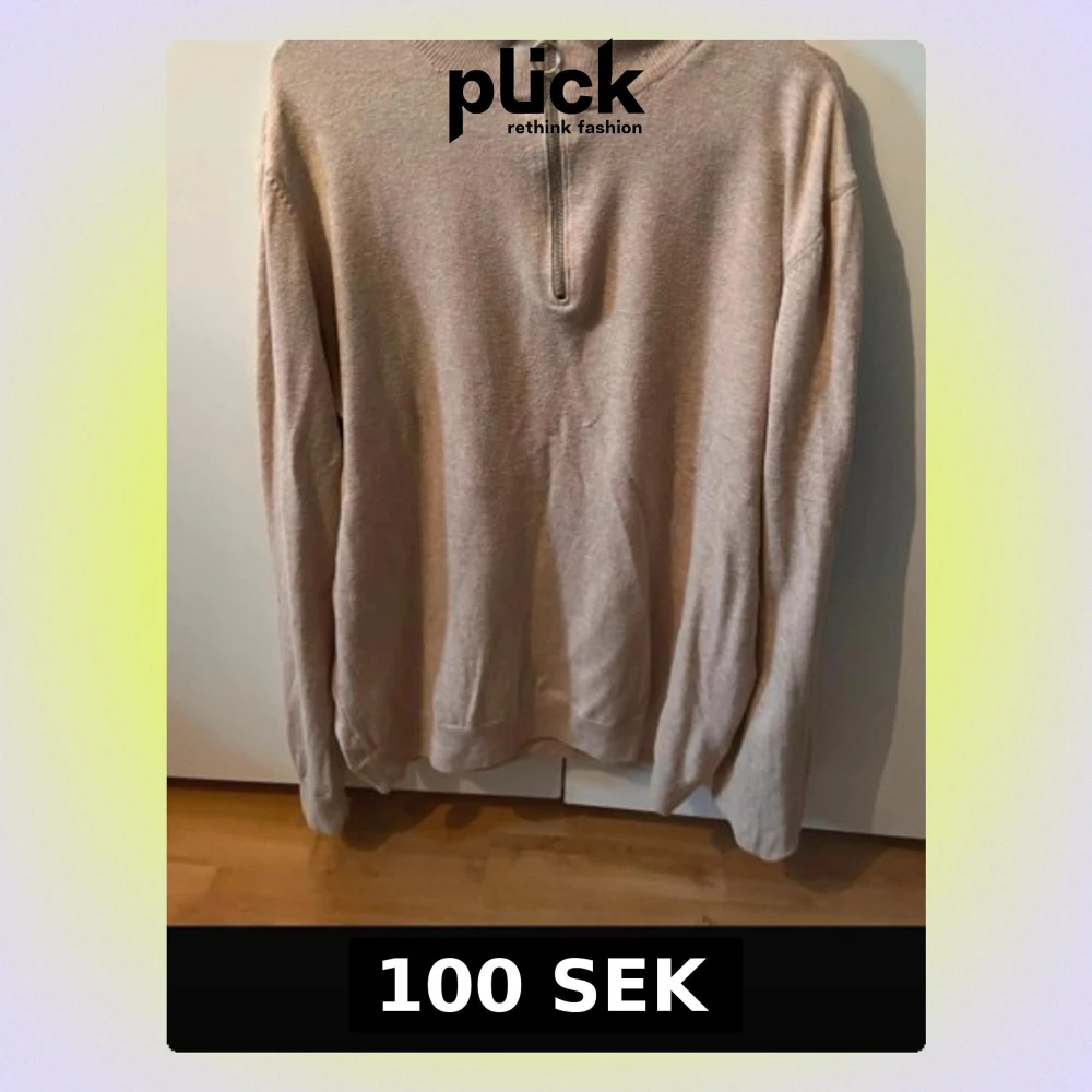 Snygg beige stickad tröja med half zip i halsen. Tröjan har långärmad design och en ribbad krage som ger en chill och stilren vibe. Perfekt för dig som gillar neutrala färger och vill ha något mjukt och bekvämt att dra på dig.