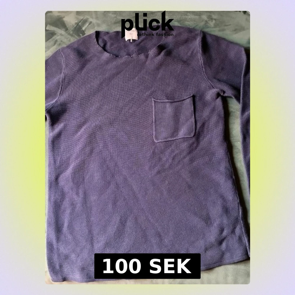 Tröja från Ljung med rund halsringning och en liten bröstficka. Lite sliten i halsen men knappt märkbart. Snygg till jeans. 100 % bomull.