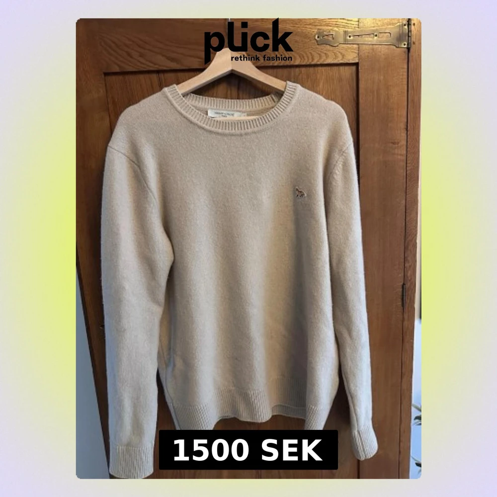 Säljer en beige stickad tröja från Maison Kitsuné med den klassiska räven. Nypris: 3400