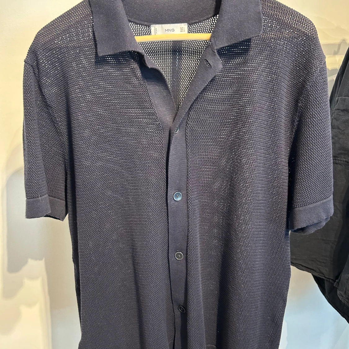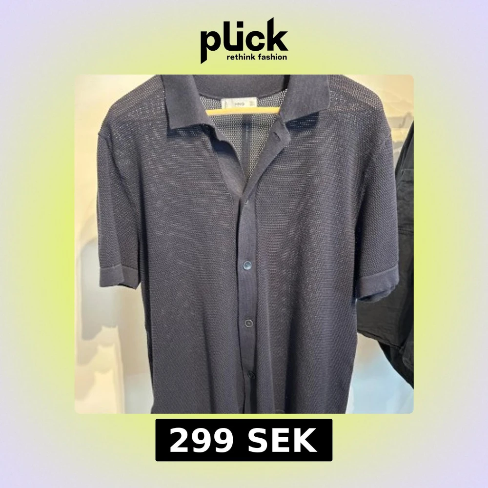 Snygg mörkblå stickad skjorta från MNG i storlek L. Skjortan har korta ärmar, klassisk krage och knappar framtill. Materialet är stickat och ger en luftig känsla, perfekt för varmare dagar. Enkel och stilren design som passar till jeans eller shorts.