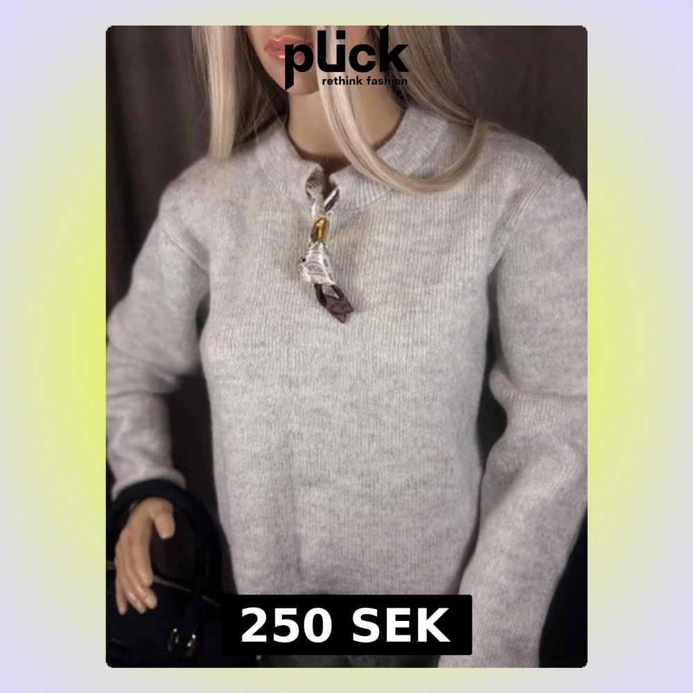 Ljusgrå stickad tröja med scarfdetalj M-L