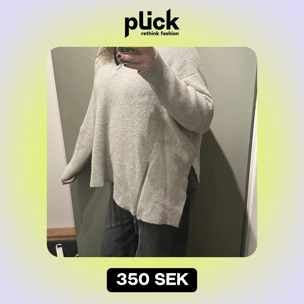 Säljer en supermysig grå stickad tröja från AllSaints i storlek L. Den har en v-ringad design och långa ärmar, perfekt för kyliga dagar. Materialet är en blandning av ull och nylon, vilket gör den både varm och bekväm. Perfekt för höst och vinter! 🍂❄️