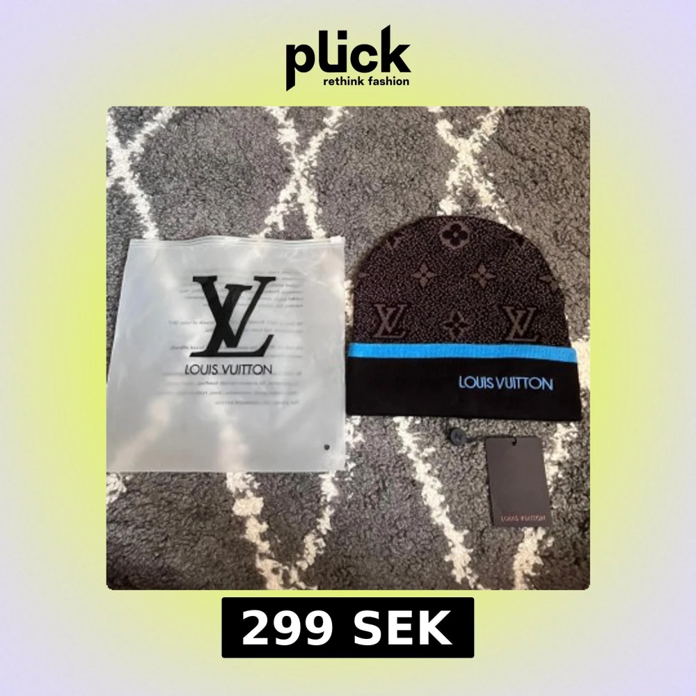 Exklusiv mössa från L i grått och svart med klassiskt L-monogram och blommönster. Mössan har en svart uppvikt kant med blå rand och broderad L-logga framtill. Tillverkad i mjukt stickat material, perfekt för kyliga dagar.