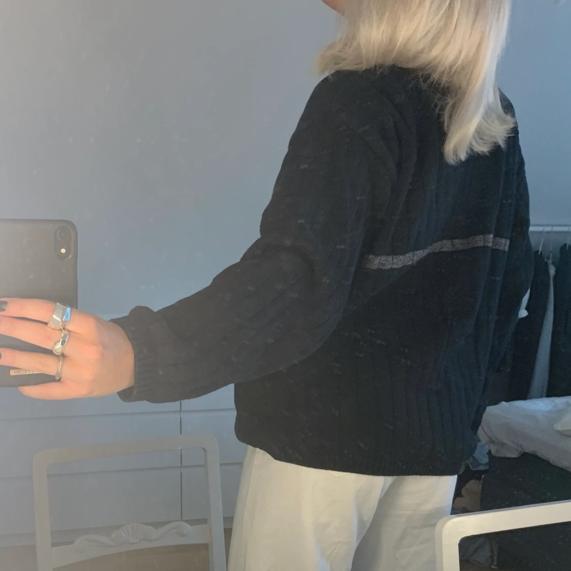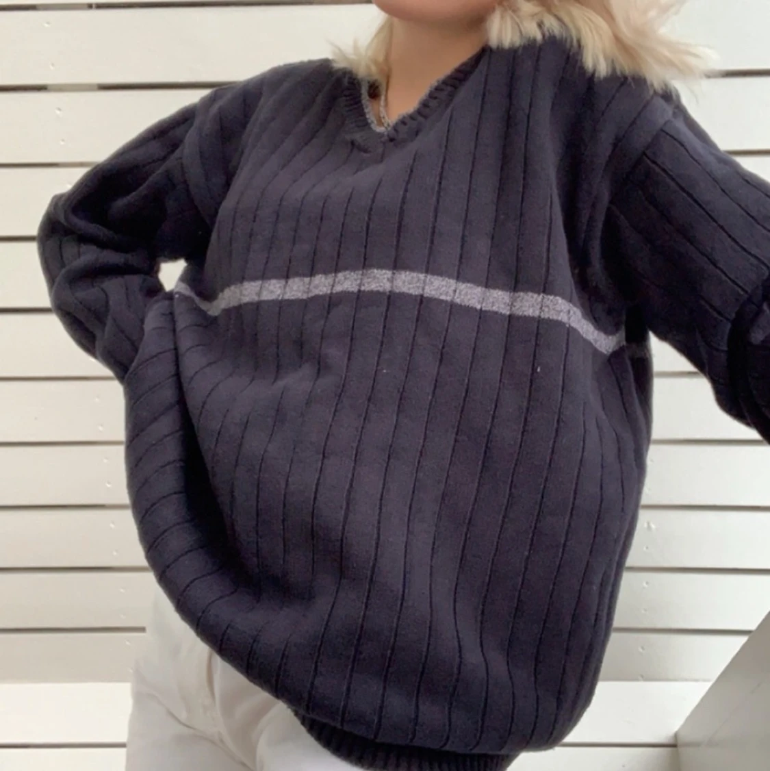 Säljer denna stickade tröja. Storlek XL men sitter snyggt oversized på mig som har S/M vanligtvis. Pris 100kr. Frakt tillkommer.