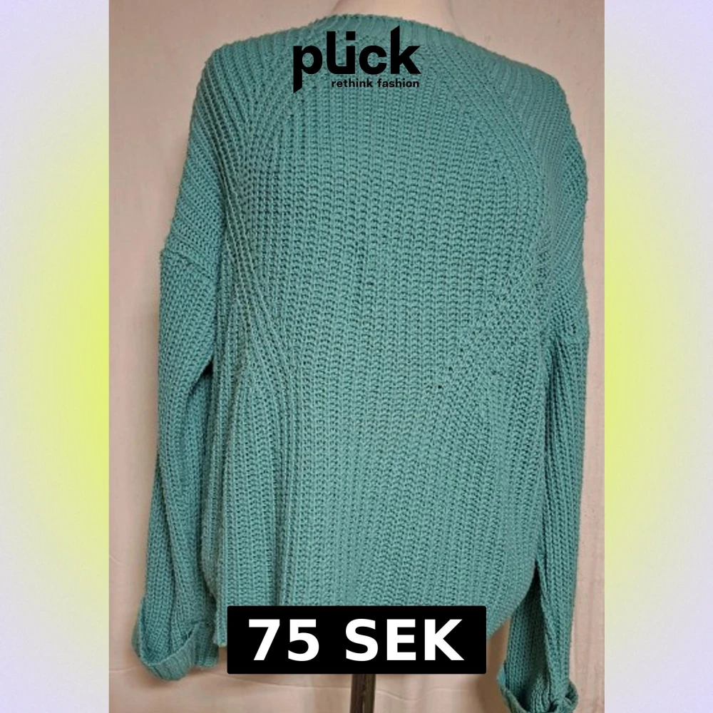 Säljer en chill turkos stickad tröja från Hailys i storlek L. Tröjan har grov ribbstickning, rund hals och långa ärmar med uppvikta muddar. Passformen är loose och den är perfekt för att mysa i under höst och vinter. Materialet känns mjukt och skönt mot huden.