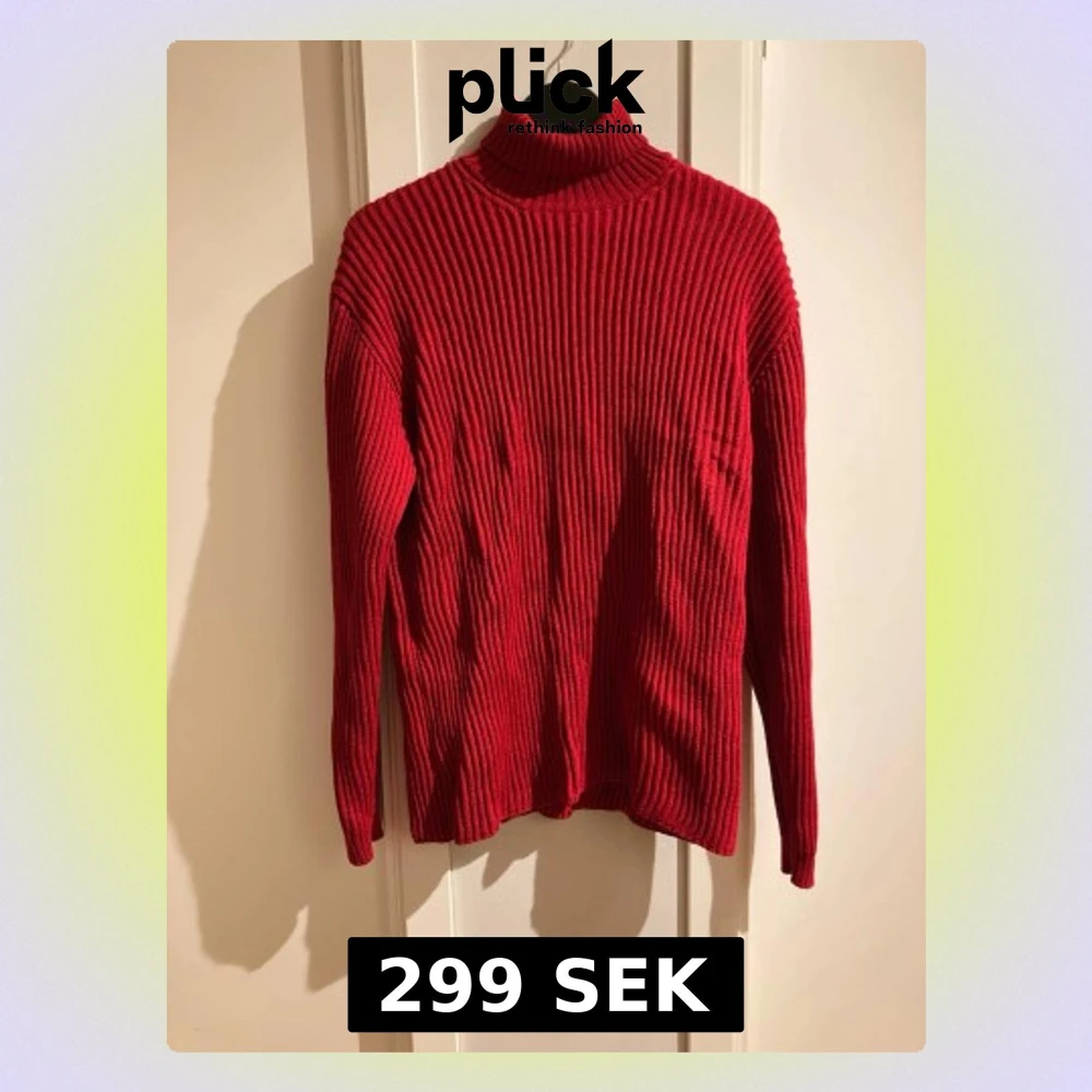 Säljer en snygg röd ribbstickad polotröja med lång ärm och hög krage. Tröjan har en tight passform och är perfekt för lager på lager. Materialet känns mjukt och stretchigt, vilket gör den bekväm att bära hela dagen.
