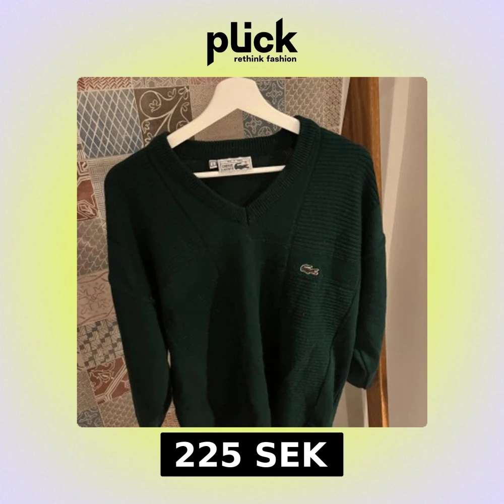 Mörkgrön stickad tröja från Lacoste med klassisk v-ringning och broderad krokodil-logga på bröstet. Tröjan har ribbade detaljer vid hals och axlar samt långärmad passform. Perfekt för dig som gillar retro och sportig stil.