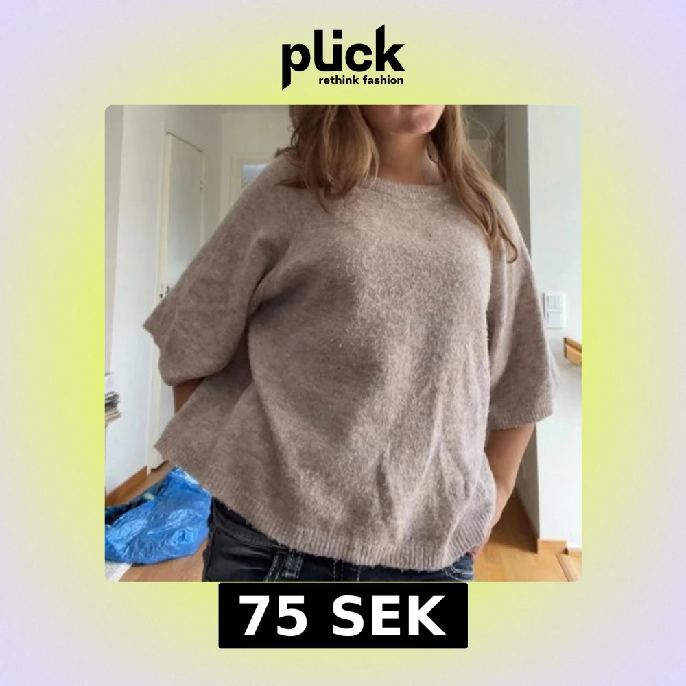 Mysig beige stickad tröja med rund hals och trekvartsärmar. Tröjan har en loose passform och är perfekt för dig som gillar en chill och avslappnad stil. Materialet är mjukt och ger en skön känsla mot huden. Passar grymt till jeans eller kjol.