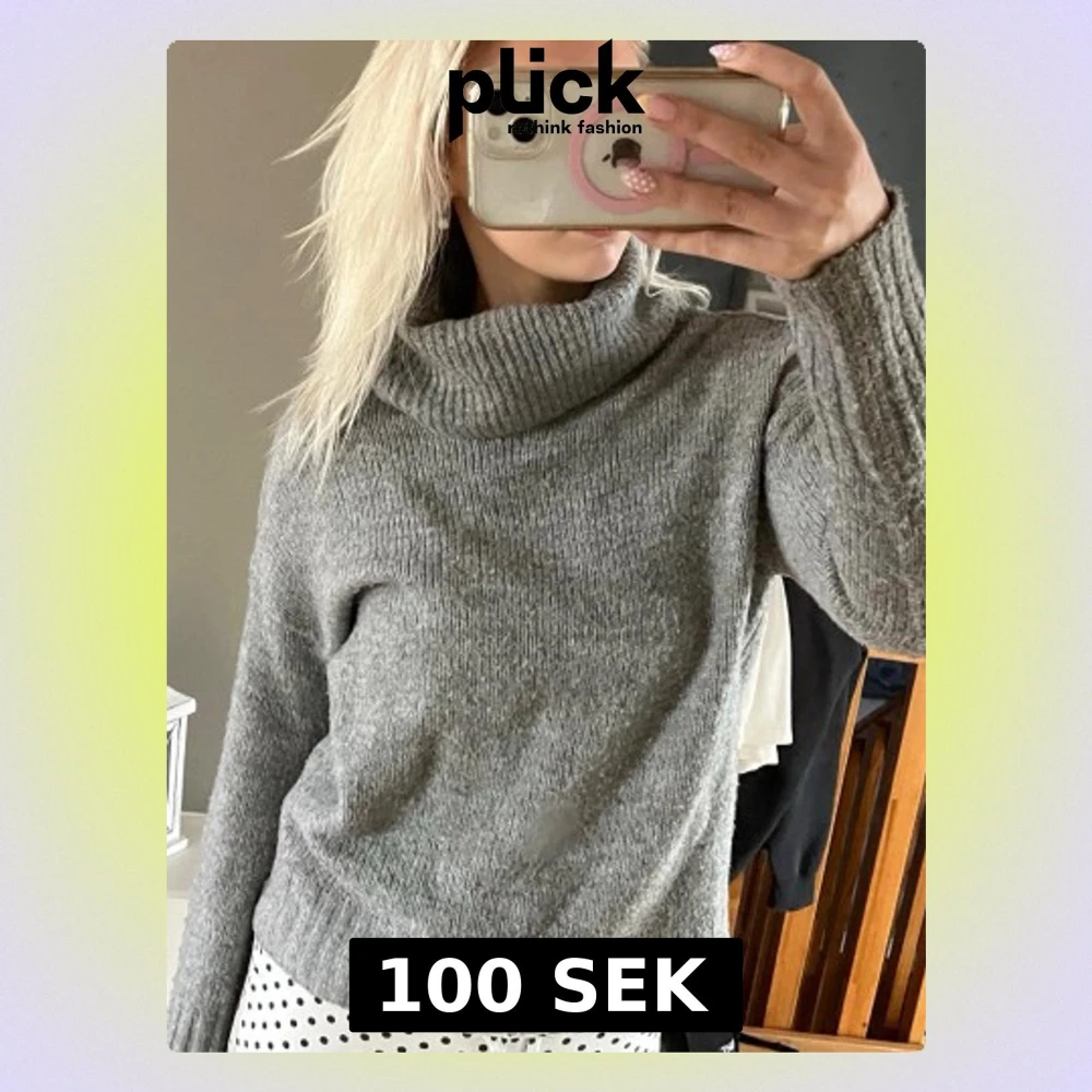 Mysig grå stickad polotröja med bred krage och långa ärmar. Tröjan har en avslappnad passform och ribbstickade muddar vid ärmslut och nederkant. Perfekt för kalla dagar och enkel att matcha med olika outfits.