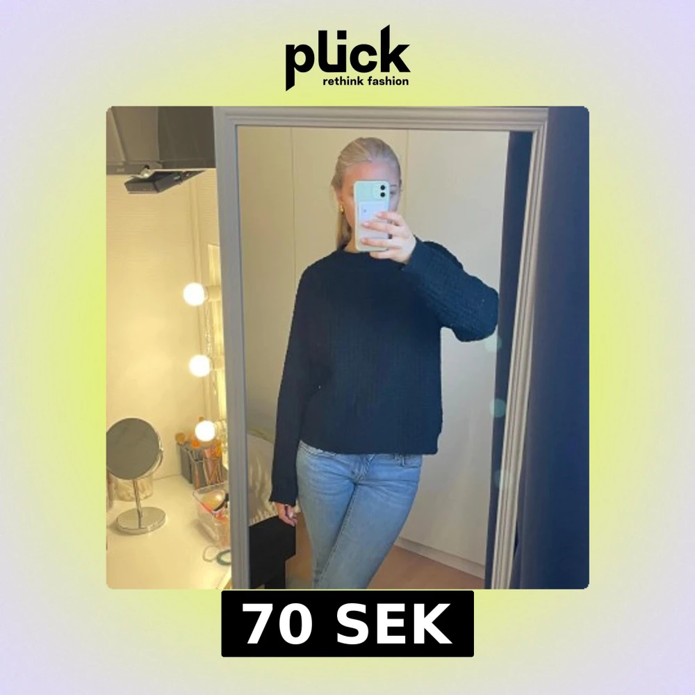 Säljer en stilren svart stickad tröja med lång ärm. Perfekt för kyligare dagar och enkel att matcha med olika outfits. Den är lite nopprig. Passar mig som bär storlek S.