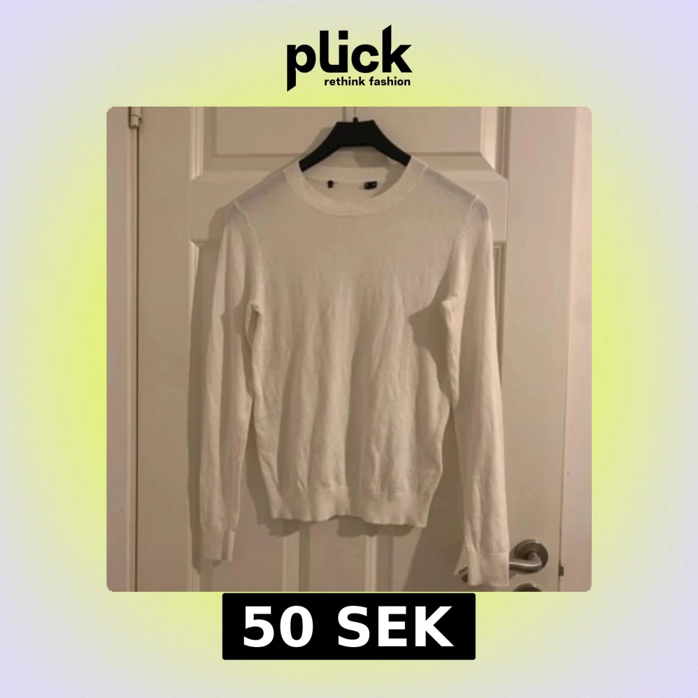 Säljer en stilren vit stickad tröja från lager157 Tröjan har långa ärmar och en rund halsringning, perfekt för kyligare dagar. Enkel och klassisk design som passar till det mesta.