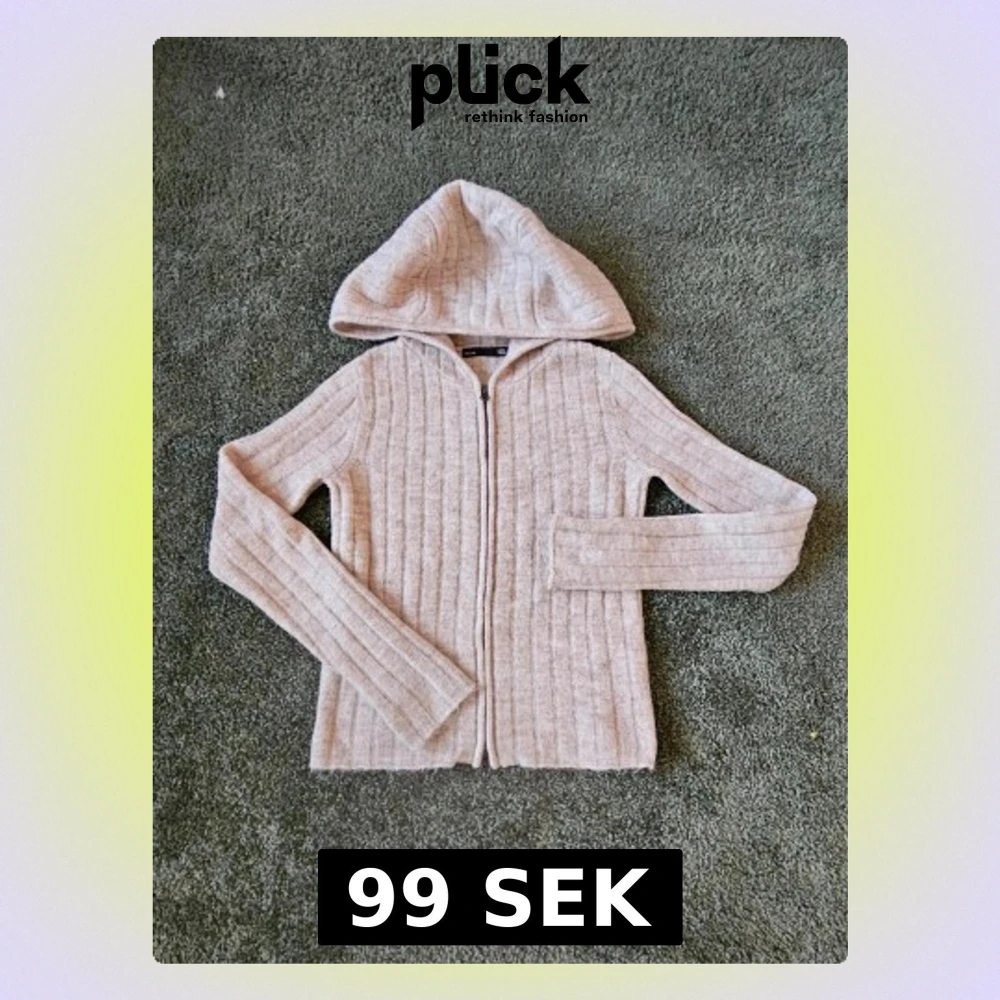 En beige stickad hoodie med dragkedja i storlek XS. Hål för tummarna, helt ny aldrig använd. Från Lager 157