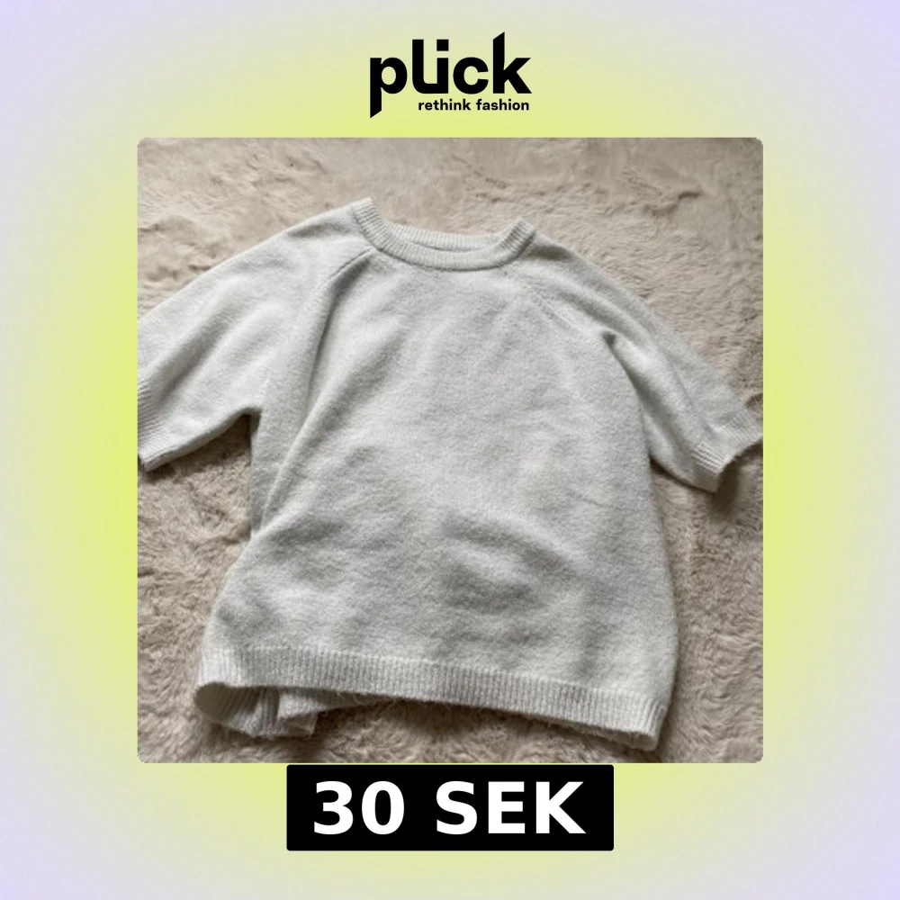 Supermjuk vit stickad tröja med korta ärmar och rund hals. Perfekt för lager-på-lager och chill vår- eller sommarstil. Ribbstickade muddar vid ärmslut och nederkant ger en clean look.