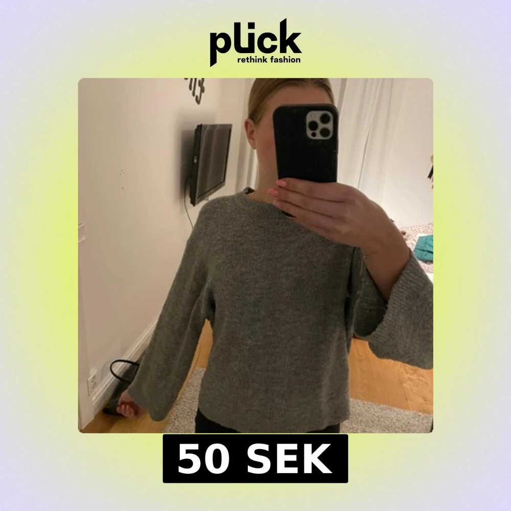 Mysig grå stickad tröja med rund halsringning och vida, långa ärmar. Perfekt för lager-på-lager och enkel att matcha med jeans eller kjol. Tröjan har en avslappnad passform och är superbekväm för kyligare dagar. Säljer då den är lite kort i ärmarna på mig då jag är ganska lång.