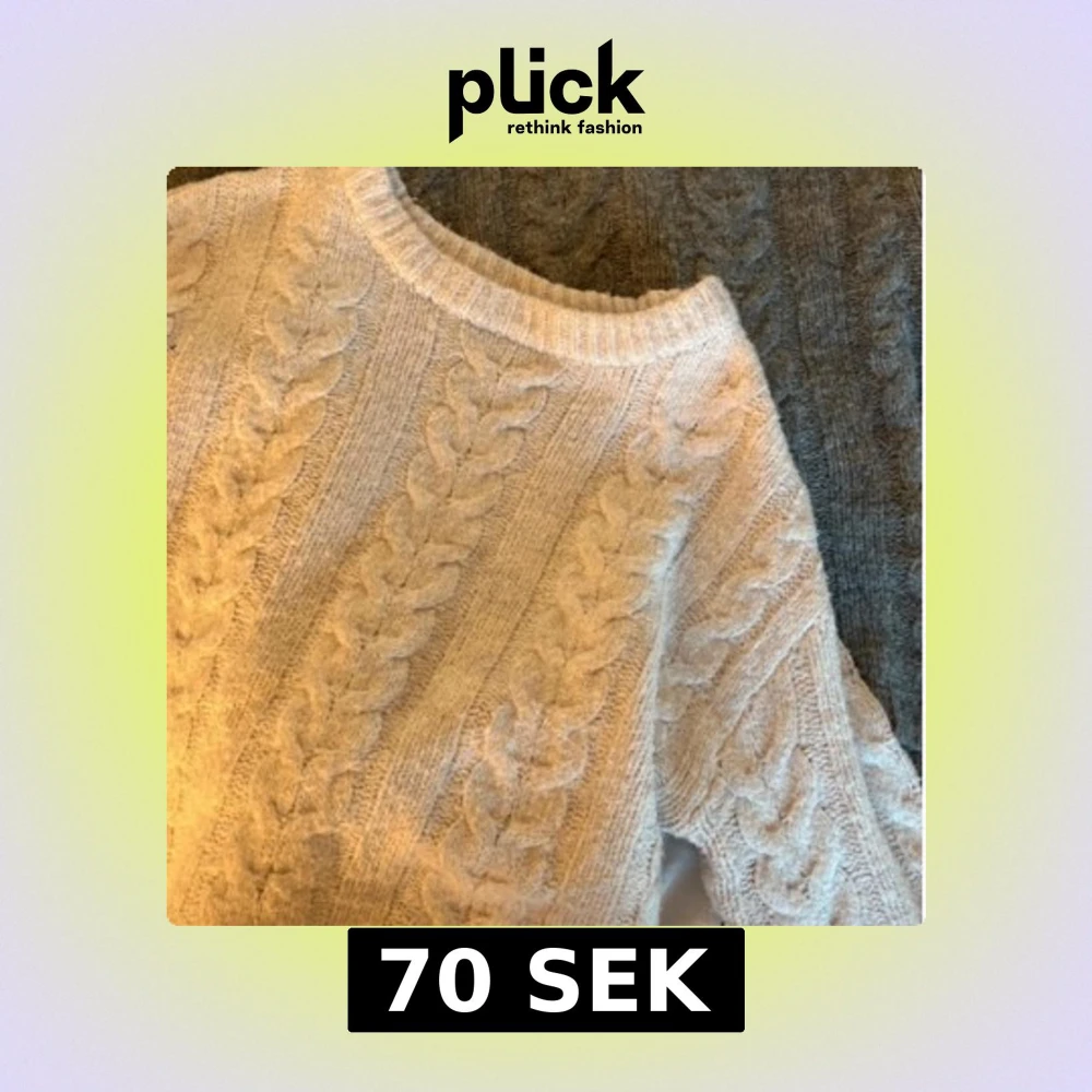 Ett två pack kabelstickade tröjor, en vit och en grå med rund halsringning och långa ärmar. Passar till mycket. En aning urtvättade.