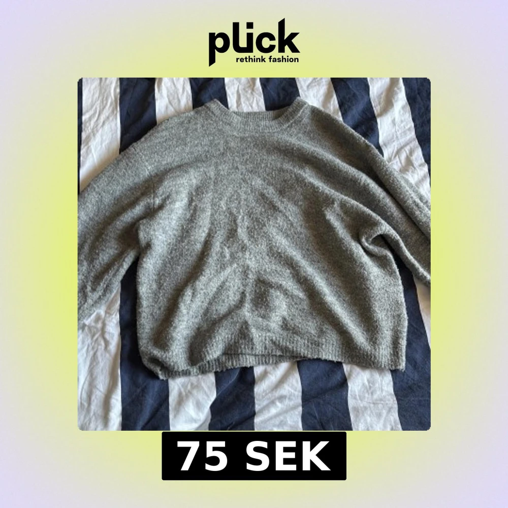 Mysig grå stickad tröja med rund halsringning och långa ärmar. Tröjan har en relaxed passform och ribbade muddar vid ärmslut och nederkant. Perfekt för lager-på-lager under kyliga dagar.