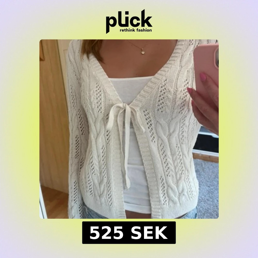 Supersöt vit kabelstickad kofta i bomull. Från vero Moda. Storlek xs men jag har normalt storlek s och den passar fint.