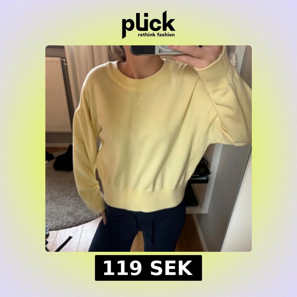 Superfin ljusgul stickad tröja med rundad hals och ribbade muddar vid ärmslut och nederkant. Modellen är loose fit och har långa ärmar. Perfekt för dig som gillar mjuka och sköna plagg i en fräsch färg.